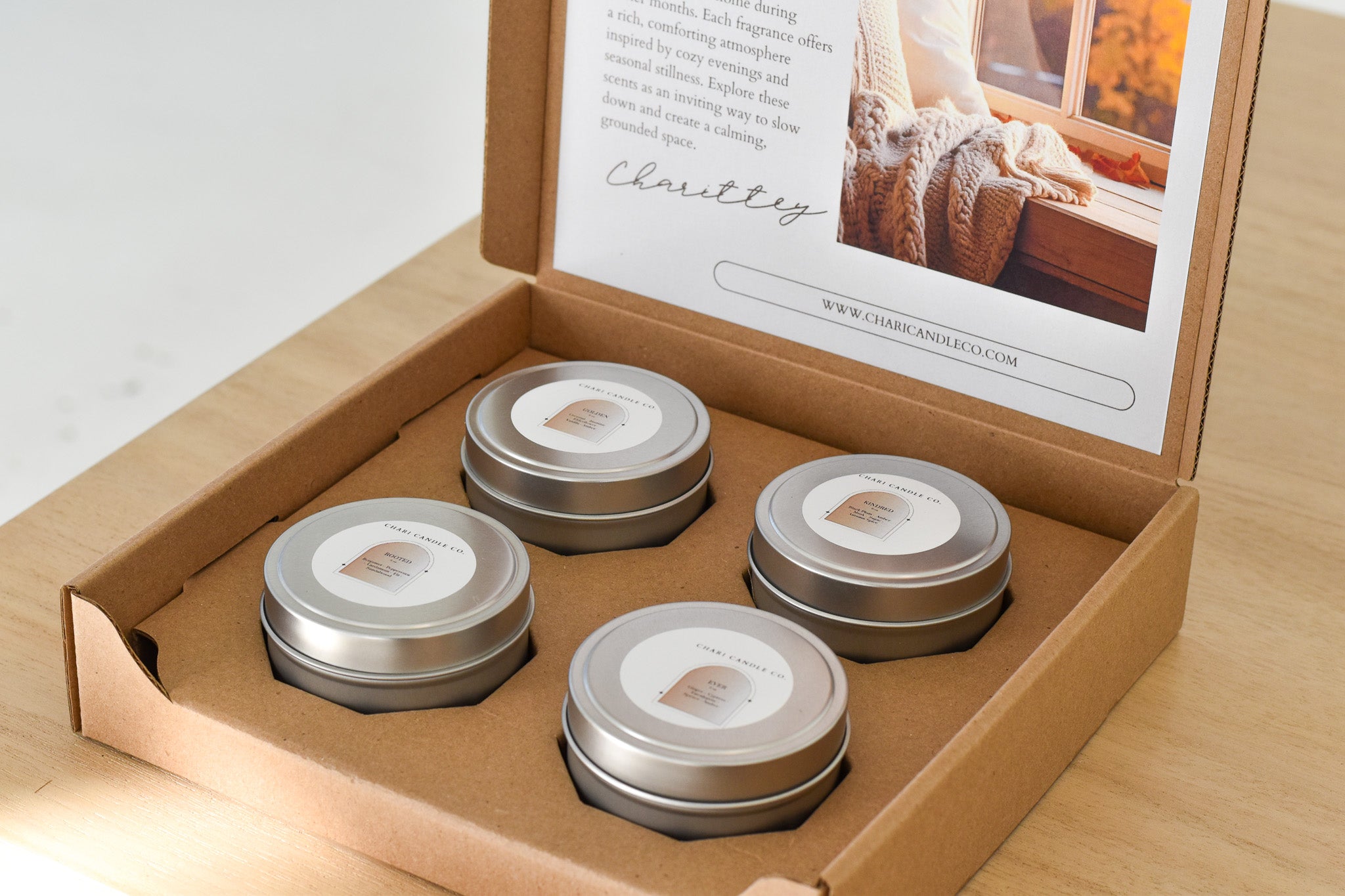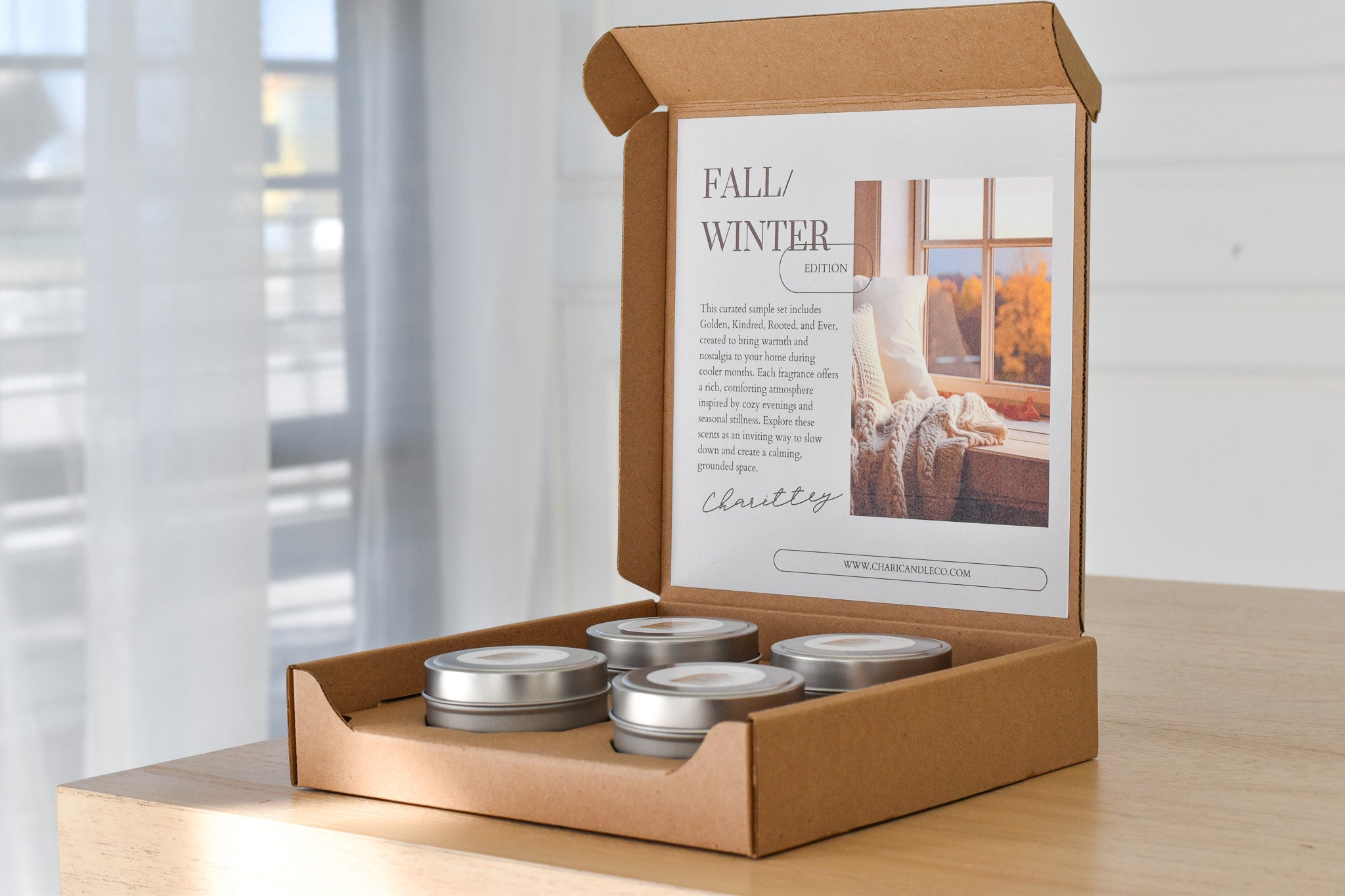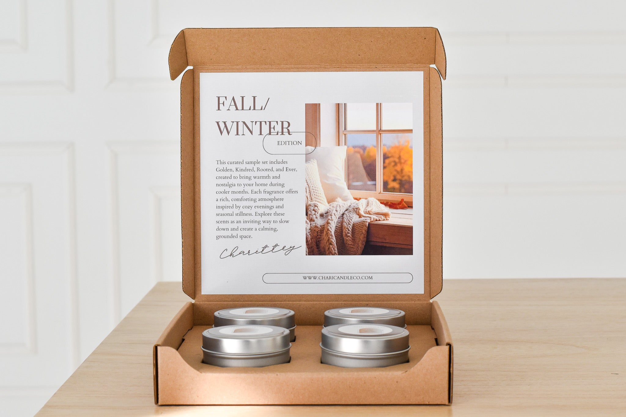 This curated sample set includes Golden, Kindred, Rooted, and Ever, created to bring warmth and depth to your home during cooler months. Each fragrance offers a rich, comforting atmosphere inspired by cozy evenings and seasonal stillness. Explore these scents as an inviting way to slow down and create a calming, grounded space.